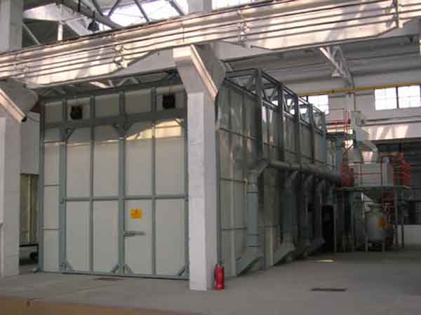 环保零排放内循环式自动����� �������Ƴ������������ �������Ƴ����������� �������Ƴ������������ �������Ƴ�������喷砂房系统设备满足对大气中粉尘零排����� �������Ƴ������������ �������Ƴ������������ �������Ƴ������������ �������Ƴ�������放环保严格要求,同时喷砂房内喷砂作业时粉尘少、����� �������Ƴ������������ �������Ƴ����������� �������Ƴ����������� �������Ƴ�������照明亮度大于400勒克斯、劳动防护保����� �������Ƴ����������� �������Ƴ������������ �������Ƴ������������ �������Ƴ�������障好等特点,从而达到喷砂房内����� �������Ƴ������������ �������Ƴ������������ �������Ƴ������������ �������Ƴ�������喷砂作业工作环境。环保喷砂����� �������Ƴ������������ �������Ƴ������������ �������Ƴ������������ �������Ƴ�������房系统设备配置为:钢结构+����� �������Ƴ������������ �������Ƴ������������ �������Ƴ������������ �������Ƴ�������夹心彩板喷砂房室体、喷砂房室体内层为3����� �������Ƴ����������� �������Ƴ������������ �������Ƴ������������ �������Ƴ�������mm钢板外敷高耐磨橡胶板,并配置����� �������Ƴ������������ �������Ƴ������������ �������Ƴ����������� �������Ƴ�������两套折叠推拉大门;喷砂机为ACME-4W-����� �������Ƴ������������ �������Ƴ������������ �������Ƴ����������� �������Ƴ�������2A型单仓保压式电控双枪压送喷砂机,磨料����� �������Ƴ������������ �������Ƴ������������ �������Ƴ����������� �������Ƴ�������回收分选系统为局部地坑水平����� �������Ƴ����������� �������Ƴ������������ �������Ƴ������������ �������Ƴ�������皮带输送机构、垂直斗式提升机、旋转丸尘����� �������Ƴ������������ �������Ƴ������������ �������Ƴ������������ �������Ƴ�������分离器式分离器;除尘系统采用KLT4-36滤筒����� �������Ƴ������������ �������Ƴ������������ �������Ƴ������������ �������Ƴ�������除尘器,工件输送机构为轨道小车与旋转����� �������Ƴ������������ �������Ƴ����������� �������Ƴ������������ �������Ƴ������转盘,电气控制系统均采用施耐德、西门子等品牌电气����� �������Ƴ������������ �������Ƴ����������� �������Ƴ������������ �������Ƴ������元件。